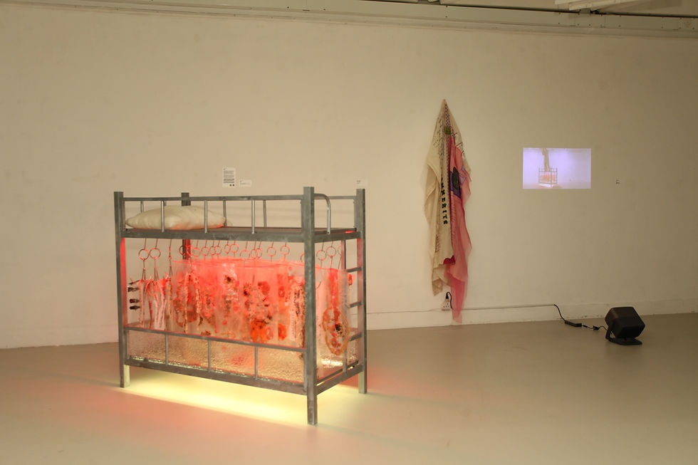 The series of three portraits are icons of what the artist looks up to with a vast chasm. Growing up in a religious context, Mother Mary and other female holy figures were regarded as the embodiment of one should inherit. In reality, it is the beauty, battle and darkness of the world from which shapes the artist.